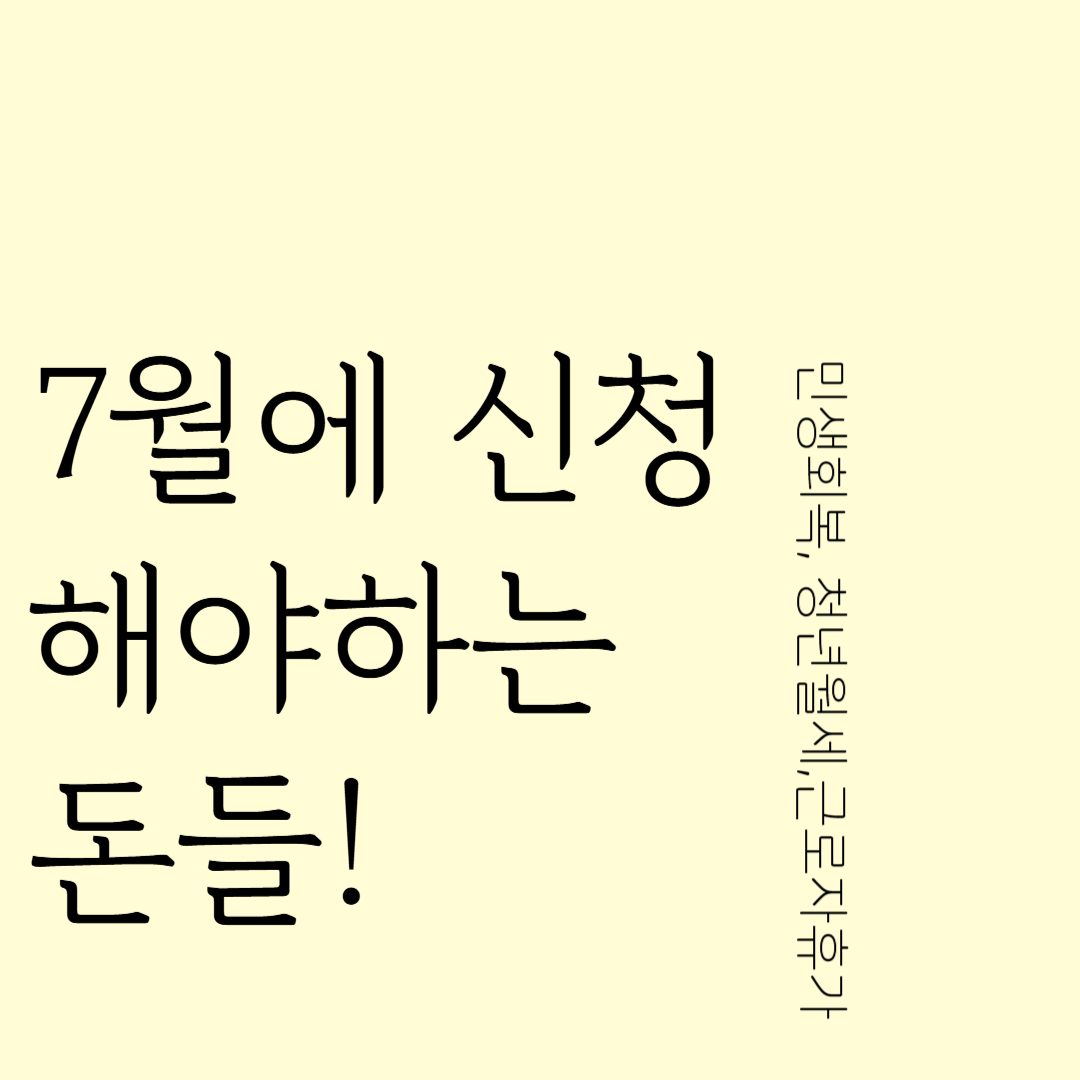 7월에 무조건 신청해야 하는 지원금 정리해 보았습니다. 필요에 맞게 신청하셔서 조금이나마 도움이 되셨으면 좋겠습니다.
